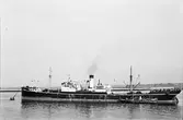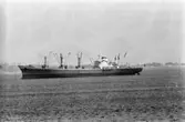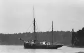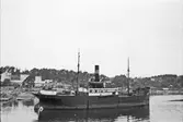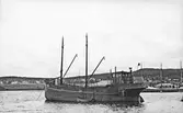 Foto av Stockholms ström med ankarliggare. I bakgrunden Skeppsholmen. Taget från Mosebacke 1875.