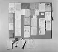Anslag och affischer i Brunkebergstunneln, samt några pilsner flaskor.