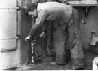 Arbetsmoment vid sättandet av ålbottengarn.