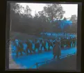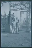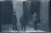 Nordiska museet under byggnad. Brukbärarlaget vid museibygget 1903. Män och kvinnor vid byggnadsställningar.