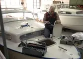 Skevningen på bordsplanka hyvlas till, aug 1954