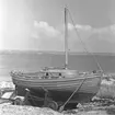 Medföljande text: "Kosterfjord 46 med kapell. Tillverkare: Bröderna Jonasson, Råssö. I bakgrunden Iwan Jonassons bostadshus. Bilden tagen år 1977. Originalfoto från Iwan Jonasson, Råssö. Se även R.77:3".