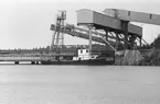 Vägstation N7, Kungsbacka. Förrådsbyggnad. Bandtransportör, skopelevator, lastningselevator. Upplag av gatsten, cementrör.