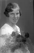 En ung kvinna med blomsterbukett. Fröken Birgit Johansson