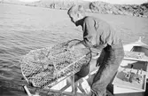 Bohusläns fiskeläger med Fiskebäckskils kyrka i bakgrunden.