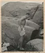 Patrullfälttävlan till häst 1934, övergång av vattendrag genom simning med häst. Man ser att stranden närmar sig - hästarna börjar få bråttom.