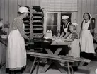 hucklen, köksinteriörer, hushållsskolor, huckle, bakning, kök, kvinnor, kvinna, brödbak, köksinteriör, hushållsskola