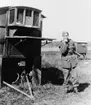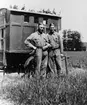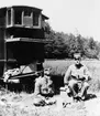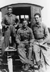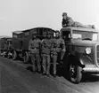 Bilden visar en grupp soldater som poserar framför vagnar med brevduvor.