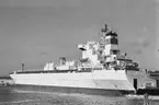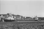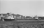 Bulkfartyget Avafors lossar den sista kollasten som tas in i Värtahamnen Stockholm, den 1 mars 1972. Gasverket ombyggt till oljedrift.