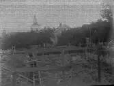 Gröna hissen och Bänkboden i Frescati. T.v.stommen till bygget av Arrheniuslaboratorierna.