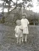 Modell i byxdress och pumps vid Saltsjöbaden, båtar i bakgrunden.