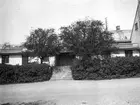 Bilden visar Chapmansporten på Karlskronavarvet samt tillhörande trapp och två träd som flankerar porten.