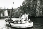 Spräng- och schaktningsarbete genom Danviksklippan för Danvikskanalen i Hammarbyleden. I bakgrunden Danviksbro.
