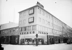 Drottninggatan och Norra Skeppargatan, kvarteret Kärrlandet. Sjöbergs garn, centrala Gävle.