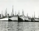 "De döda skeppens ö" - upplagda fartyg tillh. Sveabolaget vid Beckholmen 1933. Fr.v. S/S Gefle, S/S Dux, S/S Presto, längst t.h. S/S Dania.