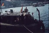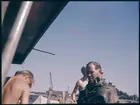 Dykarbasen Per Edvin Fälting gör föremål rent från slam och lera med hjälp av vattenstråle.