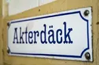 Interiör på isbrytaren Sankt Erik. Emaljskylt över dörren till kaptenshytten.