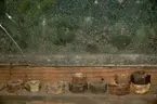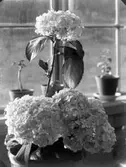 Blomkrukor på fönsterbräda. Formgivna av Wilhelm Kåge. Utställning, AB Nordiska Kompaniet, NK.