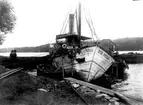 "Danskt haveriet". Förliggning. Förlisning. Foto från Finnboda varv. (Interiör och exteriör bilder från varvsområdet. Fartygsbilder. Sjösättningar m.m.)