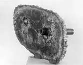 Knappnålstillverkning vid J.H. Tidbeck Metallduksväveri och Metalltrådsvarufabrik. Knappnålssax används för fastsättning av nålar i nålbrev.