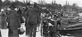 Fiskbron vid Nyköpingshus, marknadsstånd och båtar, 1920-tal