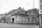 Södra delen av Brahegatan mot norr. Fastigheter närmast till vänster skyltar med: "Gränna Äkta Polkagrisar", "Richardsons Mjölk Specerier - Frukt", "Glasmästeri" och "Antikvitetsaffär". En trehjulig flakcykel står parkerad utmed husväggen. Trottoaren har en rad med borgmästarsten. Enstaka bilar står parkerade på andra sidan vägen.