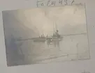 Bilden visar en del av den Svenska flottan till ankars på Stockholms ström.