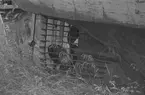 Sollefteå kraftverk, nedströms. Flottbåtar upplagda på land