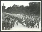 Kustflottans Flottparad på Stockholms ström år 1911 (?). Från vänster: Pansarskeppen Oden, Thor, Niord, Äran, Wasa och Tapperheten samt vid Kastellholmen torpedkryssaren Jacob Bagge och kanonbåten Skagul.