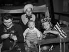 Verkställande direktör Nils Karlsson i samspråk vid ett besök av flyktingförläggningen i Doverstorp 1945. Lägret var vid tiden den största flyktingförläggningen i Sverige. Efter kriget bodde framförallt polsktalande kvinnor som räddats från Auschwitz och Ravensbrück vid platsen. Nils Karlsson besöker lägret med anledning av att hans klädfirma i Linköping, AB Axel Karlsson & Co, hade stora leveranser till de hjälpsökande.