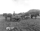 Dingtuna, Frändesta. Gödselkörning med hästar. 1943.