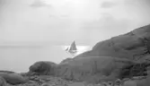 "Syd Hällsö, seglare i solstrimman. 14 Augusti 1924" enligt senare notering