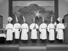 Julfirande hemma hos rektor Josef Lind med besök av stjärngossar (längst till höger Henning Kullzén).