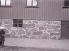 Kv. Rådmannen 2, Stora torget 19 - Storgatan 5. Grävningsarbete under Hägertz herrekipering. Till vänster "Korta murens" hörnstenar, längst in till vänster troligen murad mellanvägg. Djupet för murarsten markeras av arbetarens arm och betonggolvet , varpå en arbetares fötter synes .