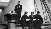 3 pansarskepp i formering. Gustav V har girat styrbord hän.
