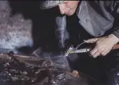 Arkeologerna Göran Bergengren (t.v.) och Jonas Ferenius (t.h.) rensar ett föremål från lera och slam med lätt vattenstråle, i Vasas hålskepp.