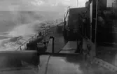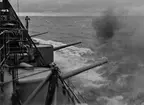 Lastångfartyget GERD av Stockholm under svår storm i Biscaya, 1914. Brottsjö över akterdäck.