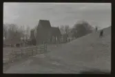 Fornlämning. Okänd man på avbildat fotografi under utgrävning av gravhög från bronsåldern i S. Vattsgård, Alfshög. I socknen finns över tio högar och många andra fornlämningar registrerade.