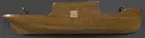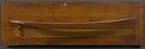 Utställningen "Skärgårdskryssaren 80 år" i trappmonter. Detaljbild av montern med halvmodell i fokus.