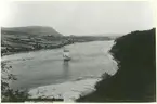 "Fotograferad på Göta älv, troligen 1935. Den sista utan motor. Dom flesta hörde hemma i Vänersborg och de brukade komma till Göteborg med tegellaster. Efter kriget riggades många ner och försågs med motor." "Råbock eller Haxe" "Käll Jac H. 1935 07 03"