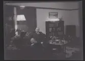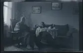 513 B Red. Karlströmer. I hemmet. En man och en kvinna ses sittandes i ett rum, sett genom dörröppningen.