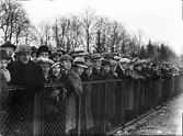 Publik vid bandymatch mellan IFK Uppsala och Västerås S K på Studenternas Idrottsplats, Uppsala, februari 1932