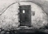 "Tjuvakistan", Lenhovda, i sitt nuvarande skick. Fängelset sett från insidan, med den tunga järndörren med inspektionslucka. Till vänster i golvet synlig "toalettgrop".