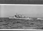 Två jagare med nummer 6 och 10 ligger an vid kajen inne på Karlskrona örlogsvarv. Jagarna skulle kunna vara STOCKHOLM och NORRKÖPING.