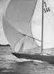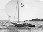 Segeltorkning vid Sandhamns dansbana under Juniregattan 1946. Det segel som syns på bilden tillhörde starbåten 2126 STARDUST (ex GUN, b. 1942, konstr. Francis Schweisguth).