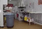 Vy över ekonomiavdelning i SJ Ro2 2702 vid ankomst innan restaurering. Förrådsrum.