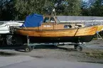 Fröbergs Båtvarv, Lidingö IND, tillverkad vid Fröbergs Båtvarv år 1939, tillverkningsnummer 87. Beställare: ing. G D Berglund. Konstruktör: C G Pettersson Båtens mått: 9.40 x 2.26 m.