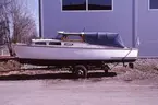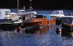 Södermalm. Kabinbåt, möjligen Fisksätra, daycruiser liknande Flipper samt sjunken segelbåt.