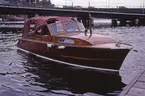 Kabin båt TA TA eftersjösättning. Fröbergs Båtvarv, Kyrkviken, Lidingö. (Brunnen och ombyggd år 1933 nuv namn DAGUN.)