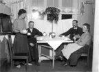 Kaffedrickning i Hindströmsgården, bilden är från den norra trädgården. Bild 1 fr v J Johansson, A Bengtsson, M Bengtsson o B Andersson. Bild 2 fr. v B Andersson, A Bengtsson, M Bengtsson o J Johansson. Några fler bilder från Bengt Andersson finns utsorterade i arkivskåpet. Bild 3 fr. v J Johanson, M Bengtsson, E Johansson o B Andersson.
